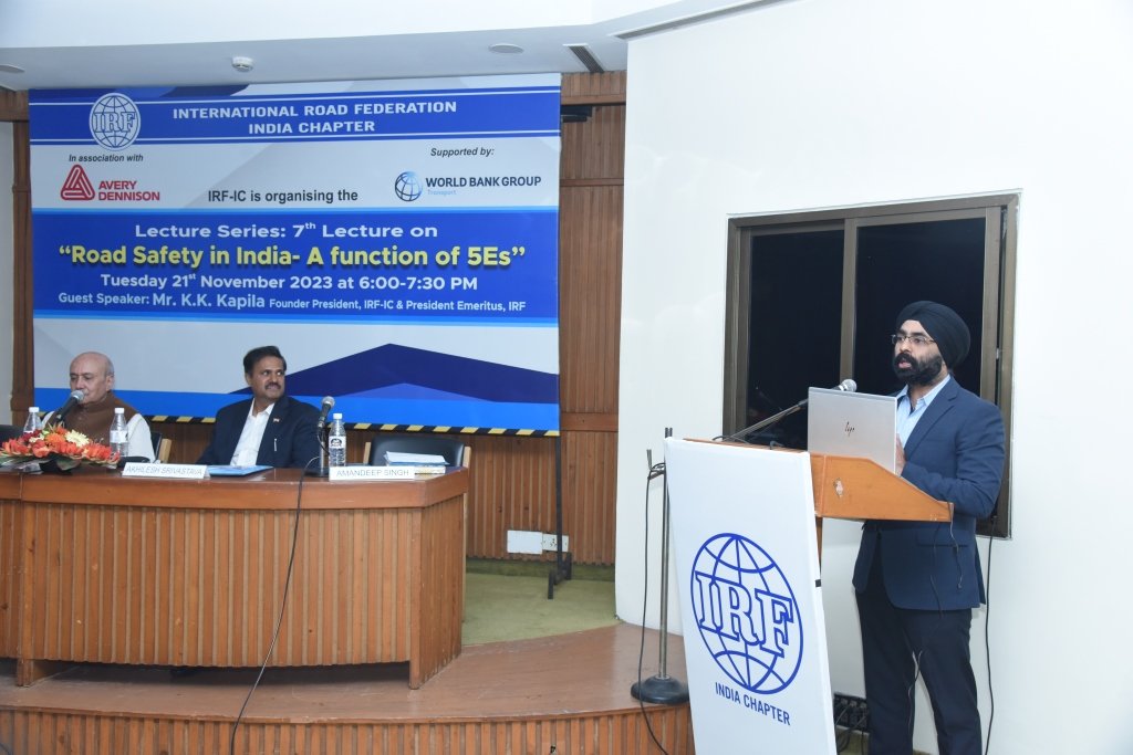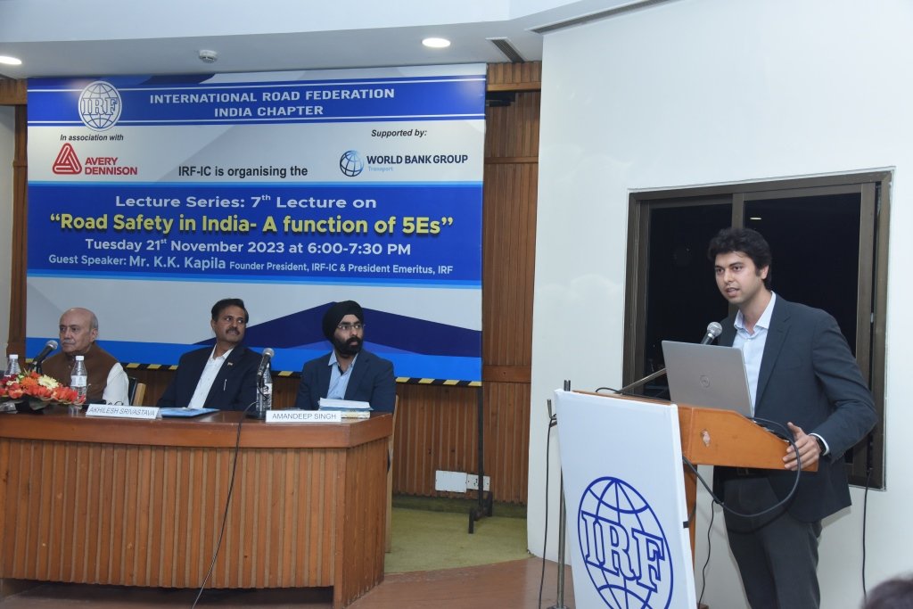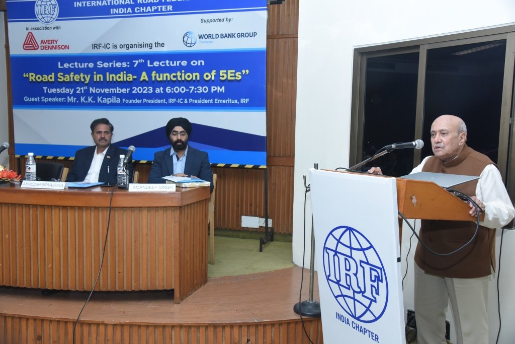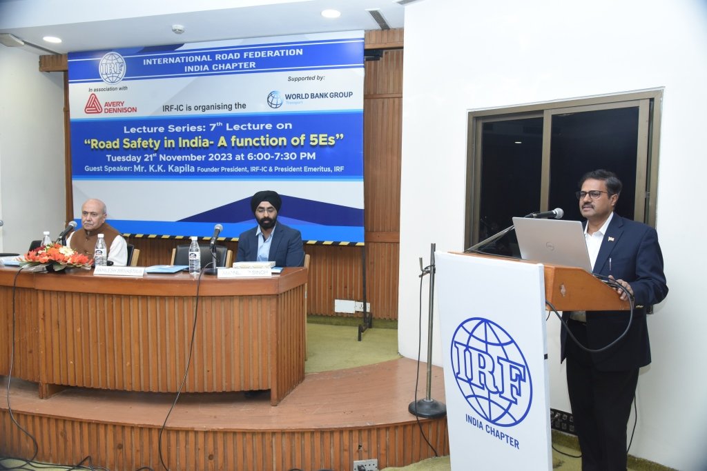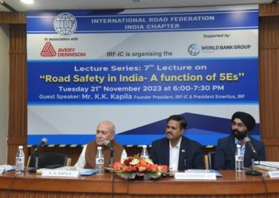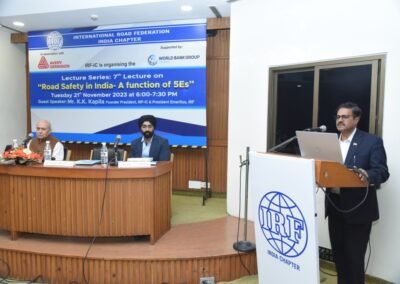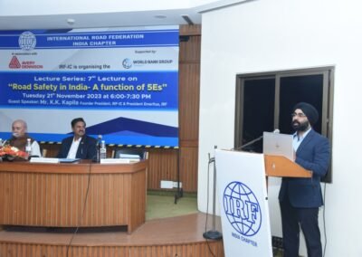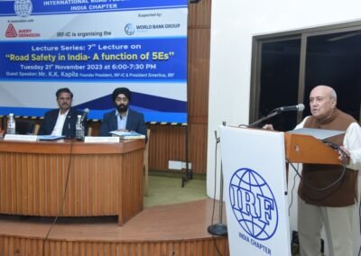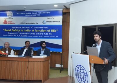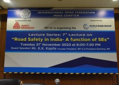 The Guest Speaker at the Lecture was Mr. K.K. Kapila. Mr. Kapila shared his presentation and highlighted the importance of 5Es of road safety in creating awareness and safe and secure road environment. He also highlighted the safe road projects in 7 states undertaken by IRF-IC and steps to reduce road accidents and fatalities therein. He also stressed on the Emergency care system as one of the critical requirement to minimize fatalities and disabilities due to road accidents/crashes.
